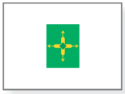 Die Flagge des Bundesdistrikts stammt aus dem Jahr 1969. Das grüne Rechteck enthält vier Pfeile, die das Gleichgewicht zwischen Zentralisierung und Dezentralisierung in Brasilien darstellen.