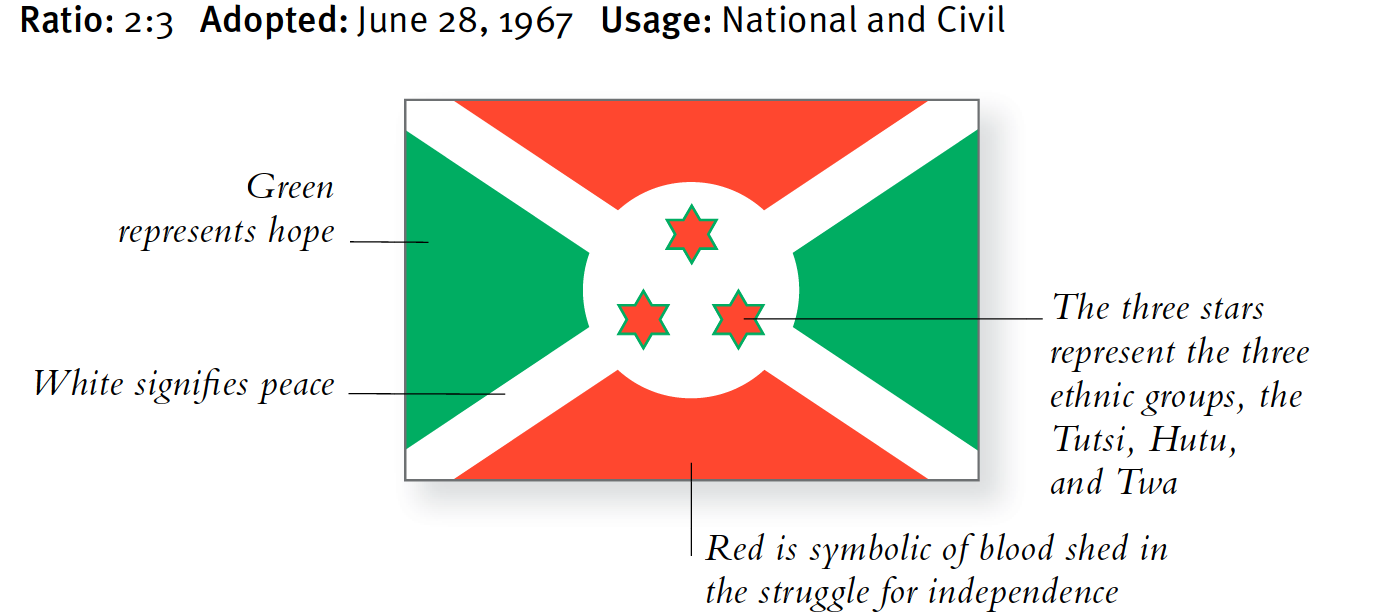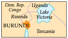 Burundi war wie Ruanda ein deutsches, dann ein belgisches Territorium. Als Königreich erlangte es 1962 die Unabhängigkeit und wurde 1966 zur Republik.