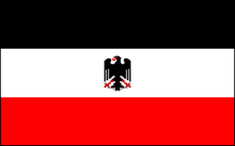Staatsflagge der Streitkräfte (März-April) 1933 Diese schwarz-weiß-rote Trikolore (Dienstflagge der Wehrmachtbehörden zur See) mit dem stilisierten Hoheitsadler in der Mitte des weißen Streifens war vom 11. März bis 20. April nur für Schiffe der Wehrmacht offiziell, die nicht zum Führen der Militärflagge berechtigt waren , 1933. Die „Militärflagge" wurde durch die Verordnung über die Hoheitszeichen der deutschen Wehrmacht am 14. März 1933 eingeführt. Sie wurde im April 1933 durch die neue Regierungsflagge (unten deutsche Staatsflagge und Fähnrich) abgelöst. Angesichts des sehr kurzen Zeitraums ist es wirklich fraglich, ob es jemals tatsächlich verwendet wurde. |