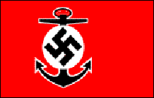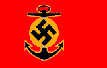 Fähnrich der Marine-Reserveoffiziere 1935-1945 Diese Variante der NSDAP-Flagge mit einem Eisernen Kreuz in der oberen Ecke wurde nach 1935 von allen deutschen nichtmilitärischen Schiffen als Handelsflagge verwendet und ersetzte das frühere dreifarbige Design. Diese Flagge trug den offensichtlichen Titel „Handelsflagge mit dem Eisenen Kreuz" und wurde sowohl als National- als auch als Handelsflagge auf See gehisst. |