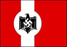 Fähnrich der Reserveoffiziere der Marine im Ruhestand 1933-1935 Diese Variante der deutschen Trikolore mit einem Eisernen Kreuz im Kanton (quadratische Fläche im oberen, inneren Viertel einer Flagge) wurde vor 1935 von allen deutschen nichtmilitärischen Schiffen unter dem Kommando pensionierter Marineoffiziere als Handelsflagge verwendet. Diese Flagge wurde sowohl als National- als auch als Handelsflagge auf See gehisst. Sie wurde nach der Verabschiedung des deutschen Flaggengesetzes von 1935, das die Verwendung des schwarz-weiß-roten Trikolore-Designs „verbot", durch die neuere Version (unten) ersetzt, die auf der NSDAP-Parteiflagge basierte. |