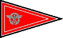 Flagge für Wassersport 1935-1936 Diese am 31. Mai 1935 eingeführte Flagge durfte nur in Verbindung mit der Hakenkreuzfahne verwendet werden. Nur Boote, deren Besitzer die deutsche Staatsangehörigkeit besaßen und Mitglied einer der offiziellen Institutionen für Wassersport waren, durften diese Flagge führen. Am 1. Februar 1936 wurde es offiziell abgeschafft. Bis zur Einführung der neuen Wassersportflagge am 6. April 1936 musste stattdessen die einfache Handelsflagge gehisst werden. Es ist interessant festzustellen, dass das schwarz-weiß-rote Trikolore-Design zwar von der von der NSDAP kontrollierten deutschen Regierung nach der Verabschiedung des deutschen Flaggengesetzes von 1935 „verboten" wurde, es jedoch offenbar eine Ausnahme bei der Wassersportflagge gab war bis Februar 1936 im Einsatz. Flaggen für den Wassersport 1936-1945 Diese am 6. April 1936 eingeführten Flaggen durften als einzelne Flagge auf einem Schiff gehisst werden. Es ist nicht sicher, ob die beiden Versionen verwendet wurden, aber es gab eine mit Weiß und Rot und eine mit Gold und Rot wurde ebenfalls verwendet. „Durch diese Flagge können unsere Schiffe offiziell von den wilden, unliebsamen Yacht-ähnlichen Schiffen unterschieden werden, deren Eigner Weltenbummler sind und deren einzige Absicht darin besteht, Ansichtskarten zu kaufen. Diese Personen tragen selten dazu bei, den Respekt vor unserer Nation im Ausland zu stärken." (aus der Zeitschrift Die Yacht , 16.11.1936) Nur Boote, deren Besitzer die deutsche Staatsangehörigkeit besaßen und einer der offiziellen Institutionen für Wassersport angehörten, durften eine dieser Flaggen führen. Sie unterschieden offenbar jene Boote, deren Besitzer Mitglieder einer der nationalsozialistischen Sportorganisationen waren, von denen, die man „wilde" Boote nannte. |