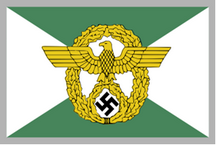 The Order Police (Ordnungspolizei) and Die Staatspolizei Die Ordnungspolizei (OrPo) war die Bezeichnung für die uniformierte reguläre deutsche Polizei, die während der Zeit des Nationalsozialismus, insbesondere zwischen 1936 und 1945, existierte. Die Orpo stand unter der Kontrolle von Reichsführer-SS Heinrich Himmler, dem Chef der Deutschen Polizei . (Chef der deutschen Polizei). Zwischen 1939 und 1945 unterhielt die Ordnungspolizei getrennte militärische Einheiten, die von den Hauptpolizeiämtern in Deutschland unabhängig waren. Die ersten derartigen Formationen waren die Polizeibataillone, die für die Strafverfolgung in besetzten Gebieten und zur Bekämpfung von Partisanen eingerichtet wurden. Die Rollen variierten jedoch von Einheit zu Einheit innerhalb der Kampagnen und von Kampagne zu Kampagne während des Krieges stark. Im Jahr 1937 wurden die Orpo-Mitglieder mit speziellen Kommandofahnen ausgestattet, die als Fahrzeugfahnen und Wimpel dienten. Der Chef der Ordnungspolizei erhielt eine silberfarbene, schräg geviertelte Flagge in Weiß und Grün. In der Mitte der Flagge befand sich das Emblem der Ordnungspolizei in Gold. Diese Flagge sollte auf dem linken Kotflügel des Fahrzeugs angebracht werden, während auf dem rechten Kotflügel die Reichsdienstflagge angebracht war. Im Jahr 1933 wurden Sonderfarben für die Ordnungspolizei Hamburg (Hanseatischer Freistaat Hamburg) in Auftrag gegeben. Im selben Jahr wurden der Oldenburger Ordnungspolizei und der Landespolizei Thüringen Fahnen verliehen. Die Farben sowohl der Ordnungspolizei als auch der Staatspolizei bestanden aus handgewebter Seide, meist mit grünem Hintergrund, überlagert mit gestickten Emblemen. Sie waren etwa 126 cm im Quadrat groß. Mit dem Ende des Zweiten Weltkriegs hörte die OrPo auf zu existieren; Doch viele Mitarbeiter machten weiter wie gewohnt und leisteten Polizeidienste für die alliierten Besatzungstruppen. Die Traditionen der OrPo setzten sich auch in Ostdeutschland fort, wo es eine staatliche Polizei (DDR-Volkspolizei) auf der Grundlage eines zentralisierten Systems gab. In Westdeutschland wurde die Polizei jedoch zunächst wieder dezentralisiert und auf kommunaler Ebene organisiert, später jedoch in Landespolizeien umorganisiert, die jeweils bis heute bestehen. |