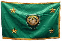 Die Flagge der Nordatlantikpakt-Organisation (NATO) von 1949 bis heute Der genaue Ursprung des NATO-Emblems ist unklar, obwohl bekannt ist, dass das grundlegende Design von einem Mitglied des Internationalen Stabes entworfen wurde. Im Jahr 1953 wurde das Design eines weiß-blauen Kompasses auf dunkelblauem Hintergrund offiziell zur Verwendung an allen NATO-Fakultäten und auf allen NATO-Dokumenten usw. genehmigt. Gleichzeitig wurde festgelegt, dass die Flagge der Nordatlantikpakt-Organisation ein schlichtes marineblaues Feld (Pantone 280) sein sollte, das mit einem weißen Kompass-„Rose"-Emblem versehen ist, von dem vier weiße Linien ausgehen. Es wurde am 14. Oktober 1953 offiziell von allen NATO-Hauptquartieren und Operationen genehmigt und genehmigt. |