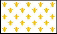 Königliche Fähnriche von Frankreich 1590-1790 Von 1590 bis 1790 wurden diese vier Flaggen auf französischen Kriegsschiffen und Festungen verwendet. Sie alle basierten auf dem blauen königlichen Banner von Frankreich, das seit dem 17. Jahrhundert verwendet wurde. Die blaue Fleur-de-Lys- Flagge ersetzt . nach und nach durch die weiße Fleur-de-Lys- Flagge wurde bis zur Französischen Revolution Es wird angenommen, dass die weiße Fleur-de-Lys- Flagge Frankreichs über allen oder den meisten französischen Festungen und Siedlungen in Amerika wehte. Das Mehrfach- Fleur-de-Lys- Muster wurde in großen Mengen gekauft und dann auf die für eine bestimmte Flagge benötigte Größe zugeschnitten. Daher hing die Anzahl der Lilien auf jeder Flagge von ihrer Größe ab, und keine zwei hatten genau die gleiche Anzahl. Diese Flagge hatte auch einen blauen Feldhintergrund. Fähnrich der Royal Navy 1638-1790 (kein fehlendes Bild, sondern eine schlichte weiße Flagge) Zwischen 1638 und 1790; und von 1814 bis 1830 wurde auf den königlichen Kriegsschiffen Frankreichs am häufigsten eine schlichte weiße Flagge gehisst. Offensichtlich hat dies wahrscheinlich zu einiger Verwirrung geführt, da die internationale Aufforderung zur „Kapitulation" oder „Verhandlung" ebenfalls eine schlichte weiße Fahne ist. |