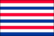Niederländische „Triple PrinceFlag" seit 1572 Die niederländische Trikolore wurde erstmals in der zweiten Hälfte des 16. Jahrhunderts verwendet, als die niederländischen Provinzen gegen Spanien aufstanden. Ihr Anführer war Prinz Wilhelm von Oranien. Nach ihm wurde die Flagge „Prinsenvlag" („Prinzenflagge") genannt. Es wurde als Marineflagge für niederländische Schiffe verwendet und kam einer Nationalflagge am nächsten, die die Niederländer bei der Erkundung Nordamerikas hatten. Es war nicht ungewöhnlich, Versionen dieser dreifarbigen niederländischen Flagge (entweder orange-weiß-blau oder später rot-weiß-blau) mit doppelten Streifen (doppelte Prinzenflagge – 6 Streifen) oder sogar dreifachen Streifen (dreifache Prinzenflagge – 9 Streifen) zu haben ) auf niederländischen Schiffen. Manchmal wurden zusätzliche weiße Streifen hinzugefügt, sodass bei einigen Versionen 7 und 11 Streifen entstanden. Im Jahr 1572 wurde die orange-weiß-blaue Flagge erstmals erwähnt, als die Stadt Den Briel befreit wurde. Die rot-weiß-blaue Flagge wurde erstmals 1596 erwähnt. Nach 1660 wurde die Version mit dem orangefarbenen Streifen sehr selten. Es ist immer noch nicht bekannt, warum der orangefarbene Streifen geändert wurde, aber eine Theorie geht einfach davon aus, dass eine neue Methode zur Herstellung orangefarbener Farbe zu einem dunkleren, fast roten Farbton führte. Die Farben der Trikolore wurden erst 1937 offiziell, als Königin Wilhelmina erklärte, dass „die Farben der Flagge des Königreichs der Niederlande Rot, Weiß und Blau sind". 1958 wurden die Farben als leuchtendes Zinnoberrot und Kobaltblau genauer definiert. |