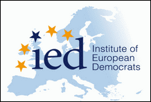 Institut Europäischer Demokraten Das Institute of European Democrats (IED) wurde im September 2007 als neues und unabhängiges Forschungsinstitut mit Sitz in Brüssel gegründet. Ihr vorrangiges Ziel besteht darin, ein besseres Verständnis der Kernaspekte des europäischen Integrationsprozesses zu fördern und eine aktive Rolle bei der Stärkung des Vertrauens der europäischen Bürger und ihrer direkten Beteiligung in Bezug auf europäische Institutionen und Politiken und vor allem in Europa zu spielen der Idee eines vereinten Europas. Die Flagge ist weiß mit einer hellblauen Europakarte, die mit ihrem Logo bedeckt ist. Es enthält ihre Abkürzung und ihren Namen sowie fünf Sterne (einer davon ist blau, die anderen vier sind gelb) in einem Bogen über der Abkürzung. |