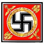 Nationalsozialistische Deutsche Arbeiterpartei (NADAP) 1920-1945 Die Nationalflagge des Dritten Reiches 1935-1945 Ursprünglich war dies die Flagge der NSDAP-Partei, aber Hitler machte sie nach 1935 zur Nationalflagge. Beachten Sie, dass der weiße Kreis auf der oberen Flagge zentriert ist, was es zu einer NSDAP-Parteiflagge machen würde. Tatsächlich waren alle nach 1935 verwendeten Versionen der Flagge mit zentrierter Scheibe Parteiflaggen der NSDAP. Im September 1935 wurde die Parteiflagge mit einer kleinen Änderung hinsichtlich der Position des Hakenkreuzes zur Nationalflagge. Von nun an verlangten die Vorschriften, dass die Scheibe und das Hakenkreuz „leicht" von der Mitte zum Fahnenmast hin versetzt sein sollten. Da die Verordnung das Offsetmaß nicht genau angab, kam es zu Verwirrung. Die Rückseite der Nationalflagge war die gleiche wie die Vorderseite, d. h. beide Seiten zeigten bis 1935 ein „nach rechts gerichtetes" Hakenkreuz. Die Handelsflagge und die Marineflagge waren die gleichen wie die Nationalflagge, mit einer außermittigen Scheibe mit Hakenkreuz, beide Seiten zeigten ein „nach rechts gerichtetes" Hakenkreuz. Sie wurde gemeinsam mit der schwarz-weiß-rot gestreiften Flagge verwendet. Schließlich wurde die Rückseite der Flagge in ein „durch und durch" Hakenkreuzbild geändert, obwohl nicht ganz klar ist, wann diese Änderung stattfand. |