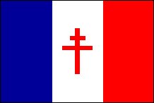 Die freie französische Flagge 1940-1944 Der besetzte Teil Frankreichs und die französischen Bürger und Kämpfer, die vor der Eroberung durch die Nazis, hauptsächlich nach England, flohen, wurden als „Freie Franzosen" bezeichnet und von General Charles de Gaulle angeführt. Sie kämpften auf der Seite der Alliierten und viele riskierten ihr Leben als Widerstandskämpfer in Frankreich. Vizeadmiral Émile Muselier schuf zwei Tage nach seinem Amtsantritt als Chef der Marine- und Luftstreitkräfte des Freien Frankreichs diese Flagge mit den französischen Farben und einem roten Lothringerkreuz, um an die Beharrlichkeit von Jeanne d'Arc zu erinnern, deren Symbol, das es gewesen war. |