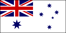 Der australische Marinefähnrich 1967 Die hier gezeigte Flagge wurde erst 1967 tatsächlich eingeführt. Während des Zweiten Weltkriegs verwendete die Royal Australian Navy zusammen mit ihren kanadischen, südafrikanischen, neuseeländischen und indischen Kollegen immer noch die britische White Ensign (siehe oben). Heute wird diese White Ensign nur noch von Kriegsschiffen der australischen Marine geflogen. Privatpersonen und Handelsschiffe nutzen die Red Ensign. |