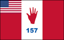 Die Flagge der amerikanischen Division „Red Hand". Als amerikanische schwarze Freiwillige in Frankreich ankamen, wurden sie während des Ersten Weltkriegs in spezielle „schwarze" Regimenter aufgeteilt. Der französische General Mariano Goybet befehligte die französische 157. Division, die aus dem französischen 333. Infanterieregiment und dem amerikanischen 371. und 372. Regiment bestand. Die erste Flagge, die vom 157. verwendet wurde, war die Feldflagge General Goybet. Als Generaloffizier erhielt er die Genehmigung, eine persönliche Feldflagge in den Farben Rot, Weiß und Rot zu führen. Diese Flagge wird fälschlicherweise manchmal mit einem blauen Streifen in der Nähe des Hisses angezeigt, ähnlich der Nationalflagge. Als die ersten Geschichten über die inzwischen berühmte Fighting „Red Hand"-Division auftauchten, wurde die Flagge als französische Flagge bezeichnet, was sie auch ist, aber als Feldflagge eines französischen Generals und nicht als Nationalflagge Frankreichs. Im Fall von General Goybet und seiner Einheit fügte er die rote Hand auf dem weißen Feld hinzu, um an die gefallenen Soldaten zu erinnern und die verbliebenen Soldaten daran zu erinnern, dass den Deutschen eine Blutschuld, wenn man so will, eine Rache geschuldet wurde der Tod dieser Soldaten. Im Jahr 1918 wurde die 371. Infanterie, ein Teil der 92. Division, der 157. Division zugeteilt, um die Einheit auf ihre volle Stärke zu bringen und ein Versprechen zu erfüllen, das Frankreich aufgrund der langen Schulden des Unabhängigkeitskrieges gegeben wurde. Aus diesem Grund wurde die Flagge des Generals erneut geändert, diesmal wurden zwei kleine amerikanische Flaggen (eine auf jeder Seite) an den roten Streifen am nächsten zum Stab hinzugefügt, was die Aufnahme der amerikanischen Einheit in das Kommando symbolisierte. Historisch gesehen war die 372. eine der ältesten afroamerikanischen Einheiten des Landes, die bis in den Bürgerkrieg zurückreichte und zu deren Abstammungslinien die Monumental City Guards und die First Separate Company gehörten. Während des Ersten Weltkriegs kämpften diese beiden afroamerikanischen Regimenter tapfer und wurden mit dem Croix de Guerre ausgezeichnet, und mehrere ihrer Männer erhielten sowohl die französische Ehrenlegion als auch das American Distinguished Service Cross. Freddie Stowers vom 371. wurde posthum mit der Medal of Honor ausgezeichnet, der höchsten militärischen Tapferkeitsauszeichnung unseres Landes. |