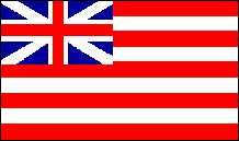 Die britische Rote Flagge 1707 Die britische Rote Flagge, auch „Colonial Red Ensign" und „Meteor"-Flagge genannt, wurde 1707 von Königin Anne als neue Flagge für England und seine Kolonien übernommen. Dies war die bekannteste der britischen Seeflaggen oder Ensigns, die durch die Platzierung der Unionsflagge im Kanton einer anderen Flagge mit einem weißen, blauen oder roten Feld gebildet wurden. Diese Flagge wurde während der Kolonialzeit häufig auf Schiffen verwendet. Dies war die erste Nationalflagge der englischen Kolonien, und Cornwallis kapitulierte unter dieser Flagge in Yorktown. |