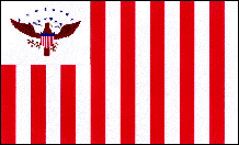 „Freihandel und Seemannsrechte" Schwalbenschwanzwimpel 1813 Diese schwalbenschwanzige weiße Flagge mit der Aufschrift „FREE HANDEL UND SAILORS RIGHTS" in Blau fasste zusammen, was die USA als die Hauptthemen im Krieg von 1812 ansahen. Diese Flagge ist vor allem dafür bekannt, dass sie an Bord der USS Chesapeake wehte, als diese kämpfte (und wurde am 1. Juni 1813 von der HMS Shannon und am 28. März 1814 an Bord der USS Essex gefangen genommen, als sie vor der Küste Chiles von der HMS Phoebe und der HMS Cherub gefangen genommen wurde. Es wurde jedoch auch an Bord anderer Schiffe ausgestellt und ist in einem offiziellen Modell der USS Constitution vor dem Büro des Marineministers enthalten. |
