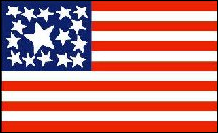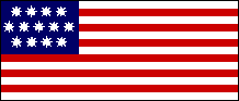 Das Sternenbanner 1795 Diese Flagge wurde am 1. Mai 1795 zur offiziellen Flagge der Vereinigten Staaten. Für die Aufnahme von Vermont und Kentucky wurden zwei neue Sterne hinzugefügt. Diese Flagge wurde die nächsten 23 Jahre lang verwendet und ist die einzige Flagge, die jemals mehr als 13 Streifen hatte. Während des Krieges von 1812 sagte Major George Armistead, Kommandant von Fort McHenry außerhalb von Baltimore, Maryland, er „wünsche sich eine Flagge, die so groß ist, dass die Briten sie aus der Ferne problemlos erkennen können", falls sie angreifen. Eine riesige Garnisonsflagge (eine übergroße amerikanische Flagge wird Garnisonsflagge genannt) wurde von einer Flaggenmacherin aus Baltimore namens Mary Young Pickersgill hergestellt, deren Mutter, Rebecca Flower Young, die Grand Union Flag für George Washington hergestellt hatte. Die Fort McHenry-Flagge war 30 Fuß hoch und 42 Fuß lang. Während des Krieges griffen die Briten im August 1814 das Hauptstadtgebäude in Washington, D.C. an und brannten es nieder. Im nächsten Monat griffen sie Baltimore an. Während der Bombardierung von Fort McHenry schrieb Francis Scott Key „The Star-Spangled Banner" zu Ehren der Männer in Fort McHenry und der sehr großen Flagge, die über dem Fort wehte. Den Briten gelang es nicht, Ft. McHenry und McHenry waren bei ihrem Angriff auf Baltimore erfolglos. ( Klicken Sie hier für den Text zum Gedicht „The Star-Spangled Banner". ) |