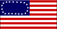 Die Buell-Flagge 1783 Im Jahr 1783 veröffentlichte ein Drucker aus Connecticut namens Abel Buell „Eine neue und korrekte Karte der Vereinigten Staaten von Nordamerika", in der dieses Bild einer amerikanischen Flagge reproduziert wurde. Ähnlich wie Paul Revere war er ein amerikanischer Silberschmied und Graveur. Er gravierte eine Reihe von Karten, darunter Karten der Küste Floridas und eine große Wandkarte der Vereinigten Staaten, die erste, die nach dem Pariser Vertrag im Jahr 1783 in Amerika hergestellt wurde. |