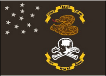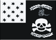 Die Schlacht von Plattsburg Flagge 1814 Die Veteran Exempts unter dem Kommando von Kapitän Melvin L. Woolsey waren eine im Juli 1812 gegründete örtliche New Yorker Milizkompanie, die sich aus Veteranen der Amerikanischen Revolution zusammensetzte, die ansonsten aufgrund ihres Alters vom Militärdienst befreit waren. Viele der Siedler im Bundesstaat New York (und Ohio) waren Veteranen des Unabhängigkeitskrieges und wurden durch Landzuteilungen an den Grenzen bezahlt. Durch die Bildung von Milizeinheiten ermöglichten sie den jüngeren Milizionären, in den Krieg zu ziehen, während sie blieben, um die örtlichen Siedlungen zu schützen. Wie die Home Guard in Großbritannien während des Zweiten Weltkriegs stellten sie in Krisenzeiten eine wertvolle Reserve dar. Diese Veteran Exempts-Flagge wurde möglicherweise in der Schlacht von Plattsburgh im oberen Teil von New York verwendet. Die Schlacht, auch als Schlacht am Lake Champlain bekannt, beendete den letzten britischen Invasionsversuch im Norden der Vereinigten Staaten während des Krieges von 1812. Der amerikanische Sieg, der kurz vor der Unterzeichnung des Vertrags von Gent ausgetragen wurde, verwehrte den Briten die Möglichkeit, Exklusivität zu fordern Kontrolle über die Großen Seen und etwaige Gebietsgewinne gegenüber den Neuenglandstaaten. Über die Aktivitäten der Veterans Exempts während des Krieges von 1812 liegen nur wenige weitere Informationen vor. Die Veterans Exempt-Flagge wurde im Plattsburgh Republican vom 31. Juli 1812 mit „... einem schwarzen Grund mit 13 Sternen für die Union of White, geschmiedet in Silber, beschrieben. Das in der Mitte." Auf der Flagge dort ist ein Totenkopf mit gekreuzten Knochen darunter zu sehen, was andeutet, was dem Lauf der Natur entsprechend bald ihr promiskuitives Schicksal und das unmittelbare Schicksal jedes Feindes sein wird, der es wagen wird, mit ihnen zu kämpfen. Darunter ein offener Kranz mit dem Motto: „Dein Wille hat er getan." Über dem Totenkopf, als Wappen gekrönt, eine Klapperschlange mit dreizehn Rasseln, zusammengerollt, bereit zum Schlag, mit diesem Motto in einem ähnlichen Kranz umgedreht es: „Tritt nicht auf mich." |