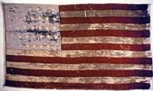 Die Fort Independence Flag 1781 Jonathon Fowle überreichte diese Flagge 1781 den Offizieren von „Castle William" (später in Fort Independence umbenannt) in Boston. Das erste ausländische Kriegsschiff, das nach dem Krieg die neuen Vereinigten Staaten besuchte, war 1791 die HMS Alligator. Sie salutierte mit der amerikanischen Flagge 13 Kanonen und die Festung erwiderten den Gruß. Die Flagge ist jetzt Teil der Sammlung des Massachusetts State House. |