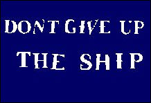Der Marinefähnrich „Gib das Schiff nicht auf". Während des Krieges von 1812 wurde Kapitän James Lawrence, Kommandant der 49-Kanonen-Fregatte USS Chesapeake, vor dem Hafen von Boston vom britischen Schiff HMS Shannon angegriffen. In weniger als 15 Minuten war die Crew von Lawrence überwältigt. Lawrence war tödlich verwundet und rief: „Sag den Männern, sie sollen schneller schießen und das Schiff nicht aufgeben; bekämpfe es, bis es sinkt!" Getreu seinen Worten kämpfte jeder Offizier in der Befehlskette des Chesapeake, bis er entweder getötet oder verwundet wurde. Zu Ehren von Kapitän Lawrence stickte eine Gruppe von Frauen die Worte „Gib das Schiff nicht auf" in eine Flagge, die Kommodore Oliver Hazard Perry überreicht wurde, der im Sommer 1813 ein neues Schiff befehligte, das nach Kapitän Lawrence benannt wurde. Perry und die USS Lawrence kaperte in der Schlacht am Eriesee ein ganzes Geschwader britischer Schiffe, allerdings nicht bevor jeder Offizier auf dem Schiff, außer Perry und seinem 13-jährigen Bruder, entweder getötet oder verwundet wurde. Lawrences Worte wurden zum Motto der US-Marine, die seitdem zahlreiche Schiffe nach ihm benannt hat, und Perrys Flagge hängt jetzt an einem Ehrenplatz in der United States Naval Academy. |