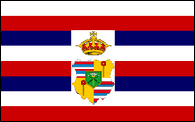 Die Flagge des Premierministers 1816-1864 Der Kuhina Nui, was direkt als „Großer Minister" übersetzt wird, in der ersten Hälfte des 19. Jahrhunderts jedoch allgemein als „Premier" übersetzt wurde, war ein Beamter, im Allgemeinen die Königin oder ein anderes Mitglied der königlichen Familie, der alle Rechte ausüben konnte ggf. exekutive Befugnisse des Königs. Das Amt wurde 1864 abgeschafft und damit auch die Verwendung des Standards. Nach 1864 war der hawaiianische Premierminister oder Premierminister ein Kabinettsmitglied im üblichen Sinne, das keine Flagge besaß. Die Flagge von Kuhina Nui wird im französischen Marinebuch als das Banner von Prinzessin Victoria Kamamalu beschrieben, was bis zu einem gewissen Punkt der Wahrheit entspricht. Sie bekleidete das Amt der Kuhina Nui von 1855 bis 1864 während der Herrschaft von König Kamehameha IV. und König Kamehameha V. Da es sich bei der Position jedoch um eine Ernennung handelte und man, wie die Anwälte sagen, „nach Belieben" tätig war, hätte die Ernennung jederzeit widerrufen werden können jederzeit abholen und an jemand anderen weitergeben. In diesem Fall wäre die Flagge an den neuen Kandidaten gegangen. |