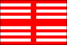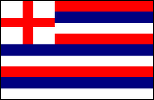 English naval ensigns did not begin to be standardized until shortly before the Civil War. Therefore, Tudor ensigns varied from ship to ship. Each was hand made and thus tended to be made in different materials and styles with no two exactly alike. They usually had horizontal stripes, in various colors, some with a canton, some without a canton, some with an overall Saint George's Cross, some with the Saint George's Cross in the canton, and some with no cross at all, just the stripes. |