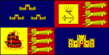 Keeper of the Coast/Warden of the Cinque Ports The title of Lord Warden of the Cinque Ports, originally called simply the "Keeper of the Coast", originated after the Cinque Ports sided with the Earl of Leicester against King Henry III in the Second Barons' War (1264-1267). The acknowledged leader of the barons' cause was Simon de Montfort, Earl of Leicester. The Royalist forces were led by Prince Edward (later Edward I of England), in the name of Henry III. After the death of Leicester, the office of Lord Warden of the Cinque Ports was appointed by Edward to provide some central authority over the Cinque Ports. It was combined in 1267 with the office of Constable of Dover Castle, with powers to collect taxes for the monarchy. The Lord Warden also holds the office of Admiral of the Cinque Ports with a maritime jurisdiction extending to the middle of the English Channel. The Standard itself is almost certainly a 19th Century creation, since it has a fully-rigged sailing ship on its design. In 1915, the Standard was described by W. G. Gordon, in his "Flags of the World", as "the most curious frolic in all heraldry", since the role of the Lord Warden of the Cinque Ports has become mainly an honorary title. It is often bestowed on members of the Royal Family, or in one case, a Prime Ministers who defended Britain in times of war. That Prime Minister was Winston Churchill, who was named Lord Warden from 1941 to 1965. Churchill additionally flew the Standard at Chartwell, his private residence, and on his car. Today the Standard, is flown at Walmer Castle, the official residence of the Lord Warden. Admiral of the Fleet Lord Boyce is the present Lord Warden of the Cinque Ports, and in 2004, a new standard was approved for him. |