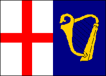 The Commonwealth Jack and Command Flag 1649-1658 This flag with the harp of Ireland and the red cross of England replaced the British Union Flag during during the Interregnum (1649 to 1660) when the royal coat of arms, along with monarchy, was removed from the English flag. After the English Civil War the Parliament had declared England to be a Commonwealth on May 19, 1649. The Union Jack was abolished in 1649 after the execution of Charles I, but would be revived as a flag solely for the King's ships in 1660 when the monarchy was restored. The Commonwealth of England had a republican government which ruled first England and Wales (1649-1653), then Ireland and Scotland (1653-1659). The government during 1653 to 1659 is properly called "The Protectorate," and was ruled by the Lord Protector, Oliver Cromwell, with dictatorial powers until his death. |