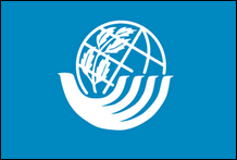 Flagge der Internationalen Arbeitsorganisation Die Internationale Arbeitsorganisation (ILO) ist die Sonderorganisation der Vereinten Nationen, die sich mit Arbeitsfragen befasst. Der Hauptsitz befindet sich in Genf, Schweiz. Seine Verwaltung und die Menschen, die weltweit bei ihm beschäftigt sind, sind als Internationales Arbeitsamt bekannt. Die Organisation erhielt 1969 den Friedensnobelpreis. Die Flagge der Internationalen Arbeitsorganisation hat das gleiche Design wie die der Vereinten Nationen, ersetzt jedoch die Karte durch ein unterbrochenes Zahnrad mit den Buchstaben „ILO" darin. |