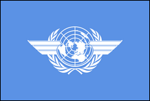 Flagge der Internationalen Zivilluftfahrtorganisation Die Internationale Zivilluftfahrt-Organisation (ICAO), eine Sonderorganisation der Vereinten Nationen, legt die Grundsätze und Techniken der internationalen Flugsicherung fest und fördert die Planung und Entwicklung des internationalen Luftverkehrs, um ein sicheres und geordnetes Wachstum zu gewährleisten. Der Hauptsitz befindet sich im Quartier International in Montreal, Quebec, Kanada. Die Flagge der Internationalen Zivilluftfahrt-Organisation ist die der Vereinten Nationen, mit über dem Emblem überlagerten Pilotenflügeln. |