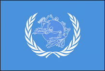 Flagge der Internationalen Seeschifffahrtsorganisation Die Internationale Seeschifffahrtsorganisation (IMO), früher bekannt als Inter-Governmental Maritime Consultative Organization (IMCO), wurde 1948 in Genf gegründet, nahm jedoch erst zehn Jahre lang ihre Tätigkeit auf und trat 1959 zum ersten Mal zusammen. Der Name IMCO war 1982 in IMO geändert. Die Flagge der Internationalen Seeschifffahrtsorganisation greift das Flaggendesign der Vereinten Nationen auf, verkleinert das Kartenbild und platziert dahinter ein angekettetes Ankerkreuz |