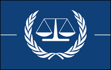 Flagge des Internationalen Strafgerichtshofs (Tribunal). Der Internationale Strafgerichtshof (IStGH oder ICCT) ist ein ständiger Gerichtshof zur Verfolgung von Personen wegen Völkermord, Verbrechen gegen die Menschlichkeit, Kriegsverbrechen und anderen Verbrechen der Aggression. Blaue Variante im Einsatz. Der Internationale Strafgerichtshof verwendet die blaue Flagge der Vereinten Nationen mit dem weißen Kranzmuster, ersetzt jedoch die Weltkugel mit der Waage der Gerechtigkeit in der Mitte. Es gibt zwei Varianten dieser Flagge, die entweder einen weißen oder einen blauen Hintergrund mit hinzugefügten Linien auf beiden Seiten des Kranzes verwenden. |