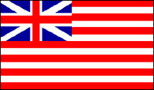 Die britischen Ostindien-Kompanien Ungefähr ein Jahrhundert nachdem Vasco da Gama um das Kap der Guten Hoffnung herum den Seeweg von Europa nach Indien gefunden hatte, interessierten sich auch andere Länder für den Handel mit dem Osten. Zu diesem Zweck wurde im Jahr 1600 die Englische Ostindien-Kompanie gegründet, die im Kanton eine rot-weiß gestreifte Flagge mit dem Georgskreuz führte. Die Schottische Ostindien-Kompanie wurde bald nach der englischen Kompanie gegründet und einige ihrer Schiffe fuhren ebenfalls am Kap vorbei. Nach der Fusion von England und Schottland im Jahr 1707 wurde die Britische Ostindien-Kompanie gegründet und führte eine neue Flagge ein, die auf der der Englischen Ostindien-Kompanie basierte. Da die Britische Ostindien-Kompanie ihren Kapitänen außer der Verwendung horizontaler rot-weißer Streifen keine klaren Anweisungen zum Design der Firmenflagge gegeben hat, gibt es Flaggen der Britischen Ostindien-Kompanie mit neun, zehn, elf oder sogar dreizehn Streifen und mit Kantone unterschiedlicher Größe. |