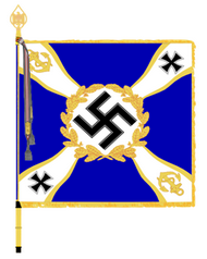 Es ist wichtig, sich daran zu erinnern, dass Fahnen (Fahnen) in den deutschen Militäreinheiten im Allgemeinen quadratisch waren und dazu bestimmt waren, von Fußsoldaten getragen zu werden, wenn sie gezeigt wurden. Jede Militäreinheit oder Kommandoflagge, die nicht quadratisch ist, ist verdächtig.