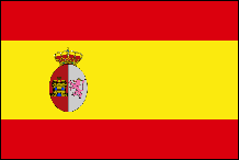 Spanische königliche Standarte 1542 Die spanische Königsstandarte war die offizielle Flagge des Königs von Spanien. Während das Waffenbanner das zeremonielle Wappen des Monarchen war, war die königliche Standarte oder königliche Flagge das Fahnendesign für den allgemeinen Gebrauch auf spanischen Schiffen und militärischen Festungen. Viele frühe Entdecker, darunter Christoph Kolumbus, hatten keine offizielle spanische Nationalflagge und nutzten die spanische Königsstandarte, um den König und die Königin von Spanien darzustellen. Heutzutage gibt es viele Variationen dieser königlichen Standarte, von denen hier eine gezeigt wird. |