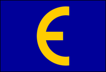 Flagge der Europäischen Bewegung 1949 Die alte Flagge der Europäischen Bewegung (EM), die bis zur Einführung der Europaflagge mit dem Ring aus zwölf Sternen durch die Bewegung verwendet wurde. Diese Flagge wird immer noch von der Union Europäischer Föderalisten (UEF) verwendet und wird heute oft als „Föderalistenflagge" bezeichnet. Die Flagge erschien erstmals 1948 auf dem Europakongress, der vom Internationalen Komitee der Bewegungen für die europäische Einheit (MEU) organisiert wurde. Die Farbe des E war jedoch Rot. Der Kongress zeigte die ersten Spaltungen zwischen Unionisten und Föderalisten (diejenigen, die eine lockere Union wollen, und diejenigen, die die Vereinigten Staaten von Europa wollen). Der Kongress führte zur Gründung der Europäischen Bewegung und nahm bei seinem ersten Treffen in Straßburg im September desselben Jahres die „E"-Flagge an, änderte jedoch die Farbe Rot in Grün. Es wird spekuliert, dass der Mann, der dies am ehesten vorgeschlagen hat, Duncan Sandys war, der für die Entwicklung der britischen Europabewegung verantwortlich war. Die Flagge wurde erstmals 1949 in London auf dem Europäischen Wirtschaftskongress gehisst. |