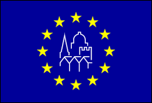 Ehrenflagge des Europarats seit 1961 Eine besondere Auszeichnung des Europarates wird jedes Jahr vom Ausschuss für Umwelt, Landwirtschaft sowie lokale und regionale Angelegenheiten der Parlamentarischen Versammlung an eine oder mehrere Gemeinden verliehen, die nach Ansicht des Ausschusses herausragende Anstrengungen unternommen haben, um die Idee der europäischen Einheit zu verbreiten . Mehr als 1.000 dieser Ehrenflaggen wurden seit 1961 vom Europarat verliehen. Die Ehrenflagge des Europarats ähnelt der Flagge des Europarats, hat jedoch einen hellen Blauton und einen goldenen Rand. tragen . An der Flagge sind zwei blaue Schärpen befestigt, die die gelbe Aufschrift „Conseil de L'Europe" auf Französisch und „Council of Europe" auf Englisch |