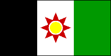 Flagge der Republik Irak 1959–1963 Nach der Revolution von Abdul Karim Qassim im Jahr 1958, die 1959 die Monarchie stürzte, führte der Irak eine neue Flagge ein, die aus einer schwarz-weiß-grünen vertikalen Trikolore und einem roten achtzackigen Stern mit einem gelben Kreis in der Mitte im mittleren weißen Band bestand. Schwarz und Grün repräsentierten den Panarabismus, die gelbe Sonne repräsentierte die kurdische Minderheit, während der rote Stern von Ischtar die assyrische Minderheit repräsentierte. Diese Version der irakischen Nationalflagge darf derzeit in der Region Kurdistan im Irak gehisst werden. |