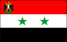 Flagge Syriens (Föderation der Arabischen Republiken) 1971-1980 1971 wurde eine rot-weiß-schwarze Flagge mit einem goldenen „Falken von Qureish", der eine Schriftrolle mit dem arabischen Namen der Föderation der Arabischen Republiken hielt, zur syrischen Nationalflagge. Die Föderation der Arabischen Republiken bestand aus Syrien, Ägypten und Libyen. |