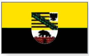 Diese Flagge war bis 1991 die gleiche wie Baden-Württemberg, dann wurden die Farben vertauscht. Der Adler erinnert an Preußen, die zweifarbigen Bänder und die Rautenkrone an Sachsen und der Bär und die Mauer an das Wappen Anhalts.