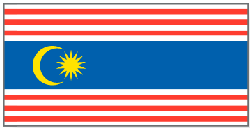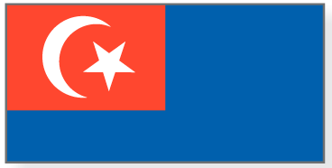 Diese Flagge spiegelt die Machthierarchie in Malaysia wider. Das gelbe Feld symbolisiert den Herrscher, das schwarze Dreieck die Bezirksherrscher und das rote Dreieck das Volk.