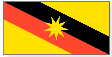 Gelb ist die traditionelle Farbe Borneos, wo der Staat liegt. Rot und Schwarz stammen von der Flagge des ehemaligen Raja von Sarawak. Der Stern hat neun Punkte für die neun Bezirke des Bundesstaates.