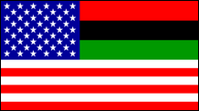 Afroamerikanische Flagge der Inklusion 1999 Diese Flagge wurde von Cecil Lee entworfen, einem bildenden Künstler aus New York City, der dafür bekannt ist, Malerei, Fotografie und Computergrafik in der von ihm selbst benannten Computer Evolved Multi-Medium Art (CEMA) zu kombinieren. Er schuf die Flagge im Jahr 1999 und präsentierte sie auf einer Einzelausstellung in der Gallery X in Harlem. Von 2002 bis 2009 konnten auf seiner Website auch T-Shirts mit dem Flaggenbild erworben werden. Indem Lee die oberen sieben Streifen der Nationalflagge der Vereinigten Staaten durch das Muster der Black Liberation-Flagge ersetzte, wollte Lee „alle Afroamerikaner unabhängig von ihrem individuellen Glauben oder ihrer politischen Zugehörigkeit" und ihre „einzigartigen Beiträge und Errungenschaften in Bezug auf Erfindungsreichtum, Kreativität und Aufbau" repräsentieren , Wachstum und Stabilität der Vereinigten Staaten von Amerika". |