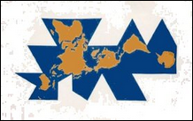 Fuller Projection Weltflagge aus den 1980er Jahren Buckminster Fuller stellte sich ein Volk/einen Planeten vor, das „Raumschiff Erde", wie er es nannte. Er sagte den weltweiten wirtschaftlichen Zusammenbruch des frühen 21. Jahrhunderts voraus und hoffte, dass dies der Beginn der Menschheit sein würde, die als eine Rasse, ein Volk, ein Planet agiert. In den 1980er Jahren entwarf Seth Lefferts, der sich selbst als „einen der Menschen auf dem Raumschiff Erde" bezeichnete, dieses Design basierend auf Fullers Vision. Die Flagge ist nach der Fuller Projection Dymaxion Air-Ocean World Map benannt. Dieses Bild wurde erstmals 1938 von Fuller konzipiert und geschaffen, indem er die Erdkugel auf eine flache Oberfläche des Ozeans und der Landmassen kollabierte, ohne ihre relativen Größen zu spalten oder zu übertreiben. Die Idee war, eine gleichberechtigte Darstellung der gesamten Menschheit zu zeigen. |