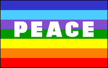 Italienische „PACE"-Flagge Amerikanische Variante der „PEACE"-Flaggen Bei dieser regenbogenfarbenen Flagge handelt es sich um die italienische Friedensflagge aus den 1970er Jahren. Auf Italienisch bedeutet das Wort „pace" „Frieden". Diese ausländische Flagge erfreute sich in den letzten Jahren in den Vereinigten Staaten einiger Erfolge als Ersatz für die häufiger verwendete und traditionelle Friedensflagge und erfreut sich auch heute noch in Italien und anderen Teilen Europas großer Beliebtheit. Die ursprüngliche gestreifte Regenbogen-Friedensflagge, die inzwischen einen weißen Streifen enthielt, erschien erstmals 1961 in Italien und enthält das weiße Wort „PACE", das Anfang der 1970er Jahre hinzugefügt wurde. Aufgrund des ähnlichen Aussehens der italienischen PACE-Flagge wurde sie von Uninformierten mit der amerikanischen Regenbogenflagge für die Rechte von Homosexuellen (LGBT) verwechselt. Bei näherer Betrachtung werden Sie jedoch feststellen, dass sie mehr Streifen und Farben aufweist (7 statt 6) als die Flagge der Gay Right. Im Grunde handelt es sich um zwei ähnliche Flaggen, die beide versuchen, die Farben des Regenbogens nachzuahmen, jedoch mit dem wichtigen Unterschied, dass den italienischen Friedensflaggen ein zusätzlicher dunkelblauer Streifen hinzugefügt wurde. Diese Friedensflaggen im italienischen Stil werden jetzt in anderen Ländern als Italien „lokalisiert" und das Wort PACE wird in lokale Sprachen wie Englisch, Deutsch (FRIEDE) oder Türkisch (BARIS) übersetzt. In den Vereinigten Staaten ersetzen die häufigsten Varianten (amerikanische PEACE-Varianten Nr. 1–4) das italienische „PACE" durch die Aufschrift „PEACE". Eine Besonderheit ihrer Verwendung in den USA besteht darin, dass sie nicht nur bei pazifistischen Kundgebungen und Protesten, sondern auch bei LGBT-Veranstaltungen verwendet werden und von ihren Teilnehmern wahrscheinlich aufgrund ihrer Ähnlichkeit mit den Regenbogen-LGBT-Flaggen übernommen wurden. Die Farbtöne scheinen stark zu variieren. Beachten Sie daher, dass diese Bilder nur die typischsten Farbkombinationen zeigen. Die am weitesten verbreitete amerikanische Variante (amerikanische PEACE-Variante Nr. 1) weist das folgende Farbmuster auf: Dunkelblau, Cyan, Hellblau, Grün, Gelb, Orange und Rot; mit dem Wort „PEACE" in Weiß über den violett-blauen und grünen Streifen. Im Gegensatz zu den USA kommt diese Variante in Europa selten vor. Eine in Europa weit verbreitete, in den USA offenbar jedoch weniger verbreitete Variante hat das Farbmuster: Lila, Dunkelblau, Hellblau, Grün, Gelb, Orange, Rot; Das Wort PEACE ist in Weiß über Hellblau und Grün eingraviert (amerikanische PEACE-Variante Nr. 2). Eine weitere Variante der amerikanischen PEACE-Flagge (American PEACE Variant #3), die in Europa sehr beliebt ist, in den USA jedoch weniger verwendet wird, hat das Farbmuster: Dunkelblau, Hellblau, Lila, Grün, Gelb, Orange und Rot; Das Wort PEACE ist in Weiß über Lila und Grün eingraviert. Die in den USA am seltensten vorkommende Variante (American PEACE Variant #4), in Europa etwas beliebter, hat das Farbmuster: Dunkelblau, Lila, Hellblau, Grün, Gelb, Orange und Rot; Das Wort PEACE ist in Weiß über Hellblau und Grün eingraviert. Die amerikanische PACE-Flagge (Variante Nr. 1) verwendet das gleiche Farbmuster wie die amerikanische PEACE-Variante Nr. 1 (Dunkelblau, Cyan, sehr helles Blau, Grün, Gelb, Orange, Rot), trägt jedoch das weiße Wort „PACE" über sehr stattdessen hellblau und grün. Eine neuere Version dieser beliebten Flagge (amerikanische PACE-Variante #3) verwendet eine sehr markante Schriftart, die auf der Flagge zentriert ist und drei Streifen (Orange, Grün, Hellblau) abdeckt, und wird derzeit vermarktet, wurde aber noch nicht vermarktet tatsächlich im Einsatz dokumentiert. Der Regenbogenfahne wurden weitere Symbole hinzugefügt. Ein häufig verwendetes Zeichen ist das Friedenszeichen, manchmal kombiniert mit dem Wort PEACE, wie im Beispiel links gezeigt. Der Ursprung dieser Flagge lag bei LGBT-bezogenen Veranstaltungen in den USA Mitte der 2000er Jahre, doch ihre Verwendung verbreitete sich Mitte der 2010er Jahre auf Friedensdemonstrationen und auch nach Kanada. Obwohl sie bei diesen pazifistischen Veranstaltungen verwendet wird, bleibt sie in erster Linie eine LGBT-Flagge. |