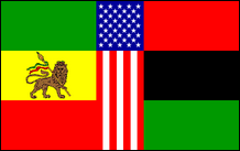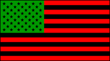 Hammons' afroamerikanische Flagge 1990 Diese Flagge wurde von David Hammons entworfen, einem afroamerikanischen Künstler aus New York City. Seine Werke wurden von der Bürgerrechts- und Black-Power-Bewegung inspiriert. Er entwarf 1990 die „Afroamerikanische Flagge", indem er die US-Nationalflagge in den Garvey-Farben umfärbte. Die Flagge ist heute Teil der ständigen Sammlung des New York Museum of Modern Art und eine Kopie wird täglich am Eingang des Harlem Studio Museum gehisst, einem New Yorker Museum, das der Kunst der Afroamerikaner gewidmet ist, so sein Design nicht mehr nur ein Kunstwerk, sondern ist zu einer sehr realen und gebrauchten Flagge geworden. Die Abmessungen der ursprünglichen Flagge betrugen 56" x 88" (142,2 x 223,5 cm), aber mittlerweile sind im Internet verschiedene Größen zu sehen, und die im Studio Museum gehisste Flagge scheint eher den Standardproportionen der US-Nationalflagge zu entsprechen als zum Originalmodell der Hammons. |