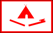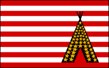 Proteste der Indianer aller Stämme auf der Insel Alcatraz 1969–1971 Der Vertrag von Fort Laramie aus dem Jahr 1868 sah vor, dass die Sioux Anspruch auf Staatseigentum erheben könnten, wenn es einen Überschuss an Staatseigentum gäbe. Als ein in der San Francisco Bay Area lebender Sioux-Sozialarbeiter erfuhr, dass das Bundesgefängnis Alcatraz geschlossen und der Stadt San Francisco übergeben werden sollte, schien es, als ob die Vertragsbestimmung gelten könnte. Im März 1964 demonstrierte eine kleine Gruppe Sioux in traditioneller Kleidung vier Stunden lang an den Docks der Insel und beanspruchte die Insel. Sie zeigten eine standardmäßige amerikanische Flagge mit 49 Sternen, aber größere Pläne waren in Arbeit. Zwischen November 1969 und Juni 1971 besetzte eine Gruppe indianischer Aktivisten und Unterstützer die Insel Alcatraz in der Bucht von San Francisco. Als die ersten Besatzer eintrafen, sandte der einsame Wachmann auf der Insel die humorvolle Ankündigung „Mayday! Mayday! Die Indianer sind gelandet!" aus. Der 19 Monate dauernde Protest sollte die Öffentlichkeit auf die Verletzungen der Bürgerrechte der amerikanischen Ureinwohner aufmerksam machen. Die Demonstranten kamen auf Einladung der Anführer der Indianer aller Stämme (IAT)-Bewegung – Richard Oakes, Adam Fortunate Eagle Nordwall und John Trudell. Während der Besetzung der Insel wurden drei, möglicherweise vier Flaggen verwendet. Bei den ersten beiden handelte es sich um einzigartige handgefertigte Flaggen, die aus auf der Insel verfügbaren Materialien hergestellt wurden. Die dritte war eine kommerziellere Flagge, die speziell für den Protest hergestellt wurde. Der vierte, ebenfalls kommerziell hergestellte, war der der Blackfoot Nation. Alle wurden irgendwann während der Proteste dorthin geflogen. Die erste kolorierte Flagge stammt aus dem Scheinprozess der Demonstranten gegen die US-Regierung. Laut Time Magazine hissten die Demonstranten in einem Artikel mit der Überschrift „Neue Flagge über Alcatraz" „... ihre eigene Flagge über Alcatraz: eine kaputte Friedenspfeife und ein purpurrotes Tipi prangen auf einem azurblauen Feld." Ein Foto der Dock Guard Tower-Flagge, aufgenommen von einem schwedischen Fotografen im Juli 1970, zeigte eine zweite IAT-Flagge mit einem roten Tipi und einer roten zerbrochenen Friedenspfeife auf einem weißen Feld mit rotem Rand. Die dritte war „Old Glory's Helper", eine kommerzielle Flagge, die von einem der Wachtürme wehte. Es wurde von Lulie Nall entworfen, einer Penobscot-Indianerin, die es Jahre nach dem Protest (bis zu ihrem Tod im Jahr 1983) als indianisches Symbol für den Protest bewarb. Diese dritte Flagge ist eine „assoziierte Flagge" und weht auf unbestimmte Zeit auf der Insel; es hatte keine direkte Verbindung zur Indians of All Tribes-Bewegung. Am 5. Januar 1970 veröffentlichte der San Francisco Chronicle ein Bild der Old Glory's Helper-Flagge mit Nall und nannte sie als Designerin. Joe Lonewalker Morris, ein Blackfoot-Hafenmann, der sich 1969 der Besatzung anschloss, erinnerte sich nicht an Nalls Flagge, sagte aber, er habe zu dem Protest eine eigene blaue Flagge der Blackfoot Nation mitgebracht. Dies wurde jedoch durch keine zeitgenössischen fotografischen Beweise bestätigt. Allerdings verbrachten zwischen 10.000 und 15.000 Unterstützer während der Besetzung Zeit auf Alcatraz und einige kamen möglicherweise mit ihren eigenen Flaggen. |
