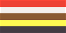 Flagge der Weltfriedensvereinigung (WPA) 1958 Die World Peace Association (WPA) hatte ihren Sitz in Jenkins, Minnesota. Die Flagge wurde im Mai 1958 in Odessa, New York, eingeweiht. Sie wurde bei der Ausstellung für den Verein auf der Weltausstellung in Brüssel verwendet. Die Bruderschaftsflagge besteht aus fünf horizontalen Streifen gleicher Breite. Der obere Streifen ist rot, der zweite Streifen ist weiß, der dritte Streifen ist braun, der vierte Streifen ist gelb und der fünfte oder untere Streifen ist schwarz. Jeder Streifen repräsentiert eine der fünf verschiedenen Gruppen der Menschheit. |