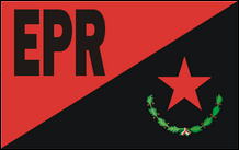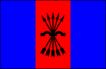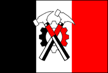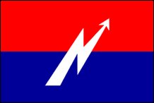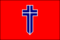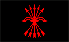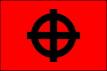 Nationale syndikalistische Bewegung von Puerto Rico (Puerto Rico) Nationale Gewerkschaftsbewegung von Puerto Rico Diese Bewegung wurde im Jahr 2000 als Neugründung von Falange Boricua gegründet . Sie erlangte nie nennenswerten Einfluss und scheint das Jahr 2005 nicht überlebt zu haben, da ihre Website (existierte von 2004 bis 2009) seitdem nicht aktualisiert wurde. Die MNSPR-Flagge war eine Kombination aus denen der Falange Boricua und der Nationalistischen Partei von Puerto Rico: rotes Joch und Pfeile, schwarz umrandet und überlagert mit weißem Kreuz, alles auf schwarzem Feld. |