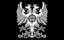 Amerikanische Front (USA) American Front wurde 1984 in San Francisco, Kalifornien, gegründet und ist damit heute eine der am längsten bestehenden weißen supremacistischen Gruppen in den USA. gestaltete Ihr Gründer war Bob Heick, der die AF lose nach dem Vorbild der britischen National Front . Neben Kalifornien war das Unternehmen vor allem in Oregon und Florida aktiv. Sein Logo ist eine Kombination aus keltischem Kreuz und Monogramm AF, wobei letzteres oft durch eine andere Farbe hervorgehoben wird (weiß über einem grauen keltischen Kreuz, alles auf schwarzem Feld), kann aber auch zu einer einzigen Form verbunden sein, was so ist auf der Flagge abgebildet, in Hellgrau (vielleicht als Symbol für Silber gedacht) auf schwarzem Feld. |