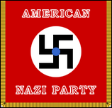 In einem „Keep the Redskins White!" Demonstrationsmitglieder der American Nazi Party demonstrierten im Oktober 1961 gegen die Aufhebung der Rassentrennung in der Fußballmannschaft der Washington Redskins. Damals war die Profi-Fußballmannschaft von Washington DC die letzte verbliebene rein weiße Mannschaft in der Liga, und obwohl die Rassentrennung heute aufgehoben wurde, bleibt sie die einziges Team in der NFL, dessen Name als rassistische Beleidigung gilt. Im Jahr 1965 kandidierte Rockwell für das Amt des Gouverneurs von Virginia und belegte den letzten Platz unter den vier Kandidaten. Obwohl die ANP bereits seit sechs Jahren existierte, kandidierte er als unabhängiger Kandidat, wahrscheinlich um sich bei den Wählern akzeptabler zu machen, und verwendete in seinem Wahlkampf eine Flagge, die von der Flagge der Konföderierten abgeleitet war, indem er die Sterne durch die Worte ersetzte ROCKWELL GOVERNOR in Weiß. Die Flagge wurde tatsächlich aus einer echten Flagge der Konföderierten hergestellt, auf der die Sterne blau bemalt wurden, bevor die Buchstaben hinzugefügt wurden. 1967 wurde Rockwell von John Patler getötet, einem ehemaligen Parteimitglied, das Rockwell aus der Partei ausgeschlossen hatte, weil er angeblich versucht hatte, die marxistische Doktrin in die Parteiprogramme einzuführen. Der Name ANP wurde 1967 kurz vor Rockwells Ermordung in National Socialist White People's Party (NSWPP) geändert. 1969 gründete Joseph Tommasi einen Jugendflügel der National Socialist White People's Party (NSWPP) mit dem Namen National Socialist Liberation Front . Die sogenannte Bicentennial Flag der National Socialist White Peoples Party wurde erstmals 1976 bei einer Demonstration am 4. Juli vor dem Weißen Haus gesehen. Die NSWPP-Partei behauptete, die Flagge feiere Amerikas Zweihundertjahrfeier und habe nichts mit der Zweihundertjahrfeier der Nationalsozialistischen Bewegung zu tun, die natürlich im Jahr 1919 begann. Die rot-weiß-blaue Zweihundertjahrfeierflagge wurde von Matt Koehl, dem derzeitigen Führer beider, entworfen die Neue Ordnung und die Weltunion der Nationalsozialisten (WUNS). Koehl hat eine lange Geschichte in Führungspositionen in verschiedenen extremistischen Gruppen, darunter der National Renaissance Party (NRP), der United White Party (UWP), der National States' Rights Party (NSRP) und der American Nazi Party (ANP). . Im August 1967 trat Koehl die Nachfolge von George Lincoln Rockwell als „Commander" der National Socialist White People's Party (NSWPP) an und benannte sie 1983 in „New Order" um. Bis dahin führten mehrere Spaltungen zur Bildung neuer Neonazi-Gruppen , hauptsächlich aufgrund von Koehls Politik, die auf seiner Vision des Nationalsozialismus als einer religiösen und nicht als politischen Bewegung basierte. Seit Mitte der 1980er Jahre hat die New Order ihren Hauptsitz in New Berlin, Wisconsin, und predigt den Nationalsozialismus als Pseudoreligion, ohne öffentliche politische Aktivitäten. Heute wird der Name „American Nazi Party" von einer Organisation unter der Leitung von Rocky J. Suhayda übernommen, einem ehemaligen Mitglied von Rockwells ursprünglicher Partei in den 1960er Jahren, mit Hauptsitz in Westland, Michigan. Rocky Suhayda schloss sich später in den 1980er Jahren einer Gruppe in Detroit namens SS Action Group an, die von Ted Dunn angeführt wurde. Dunn leitete eine Art Suppenküche und versorgte diejenigen, die unter seiner Führung „kämpften". Die neue Gruppe behauptet, George Lincoln Rockwell sei ihr Gründer, aber es scheint keine wirkliche Verbindung zur ursprünglichen ANP zu geben, abgesehen von der Tatsache, dass auf ihrer Website nostalgische Nachdrucke von Rockwells Magazin „The Stormtrooper" aus den 1960er-Jahren und Nachbildungen von Flaggen der ursprünglichen Partei verkauft werden. Die neue amerikanische Nazi-Partei verwendet auf ihrer Website eine Version der ursprünglichen ANP-Flagge (oben links abgebildet, mit blauer Weltkugel im UN-Stil) und auf ihren Kundgebungen ein vertikales Banner (links abgebildet). Vor einigen Jahren verkauften sie jedoch Flaggen verschiedener Länder und Staaten mit einem überlagerten Hakenkreuz, darunter die links abgebildete Flagge der Vereinigten Staaten mit 13 Sternen. |