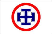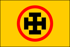 Nationale christliche Verteidigungsliga 1923–1935 (Rumänien) Nationale christliche Verteidigungsliga – LANC Die National Christian Defense League wurde 1923 durch Umwandlung der National Christian Union (Uniunea National Crestina) im Vorjahr gegründeten gegründet. Gründer und Anführer beider Parteien war Alexandru C. Cuza, ein Politiker, der bereits für seinen extremen Antisemitismus bekannt war, in dessen Namen er sogar Vorschläge nutzte, die für die damalige Zeit sonst fortschrittlich klingen würden, wie das allgemeine Wahlrecht für Männer und die Landreform. Den zweiten Platz in der neuen Partei hatte Corneliu Zelea Codreanu inne, dessen politischer Mentor Cuza in den vergangenen Jahren war. Die Flagge der National Christian Defense League war schwarz mit einer weißen Scheibe mit einem schwarzen Hakenkreuz, alles innerhalb einer Umrandung in den Nationalfarben. Laut Codreanu war das schwarze Feld das Symbol der Trauer, die weiße Scheibe symbolisierte die „Hoffnungen, die von der Dunkelheit umgeben sind, die sie überwinden müssen", während das Hakenkreuz als weltweites Symbol des Antisemitismus übernommen wurde. Die letzte Aussage legt nahe, dass das Symbol tatsächlich von den Nazis in Deutschland übernommen wurde, obwohl Cuza später behauptete, dass es in Rumänien seit 1910 verwendet wurde, als er an der Gründung der Demokratischen Nationalistischen Partei beteiligt war (Partidul Nationalist Democrat) , von der er sich später löste und die National Christian Union gründete, die Partei, deren Verwendung des Hakenkreuzes tatsächlich nachgewiesen ist. Obwohl sich die Nationale Christliche Verteidigungsliga vom italienischen Faschismus und dem deutschen Nationalsozialismus inspirieren ließ, war sie nicht so militant wie diese Bewegungen und Cuza lehnte ständig Codreanus Vorschläge ab, die Partei in eine Miliz umzuwandeln. Dies führte schließlich 1927 zu einer Spaltung, als Codreanu sich abspaltete, um die Eiserne Garde zu gründen. Die neue Bewegung gewann schnell viele Anhänger aus der Nationalen Christlichen Verteidigungsliga, die, wenn auch etwas geschwächt, überleben konnte, bis sie sich 1935 mit der Nationalen Agrarpartei (Partidul National Agrar) zur Nationalen Christlichen Partei (Partidul National Crestin) zusammenschloss . Einige Zeit nach der Spaltung nahm der Nationale Christliche Verteidigungsbund eine neue Flagge an, die rumänische Trikolore mit einem schwarzen Hakenkreuz in der Mitte, die er 1935 an seinen Nachfolger übertrug. |